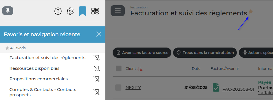 Enrichissez la liste de vos écrans favoris en cliquant sur la petite étoile,