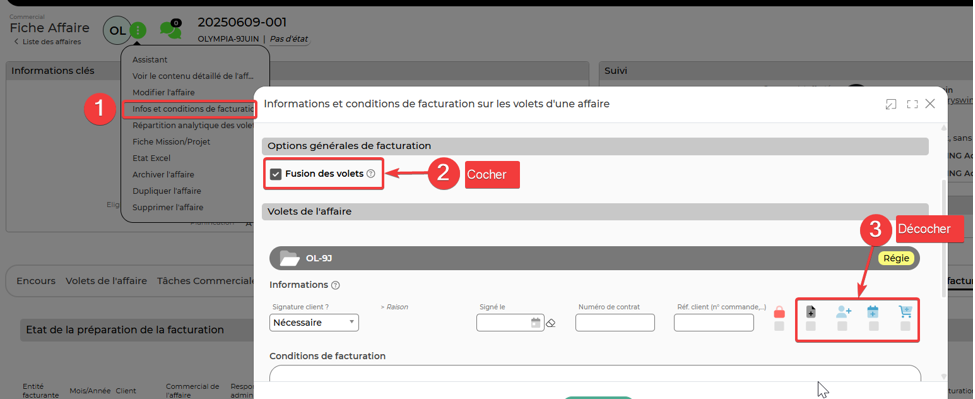 Dans la Fiche Affaire > Infos et conditions de facturation