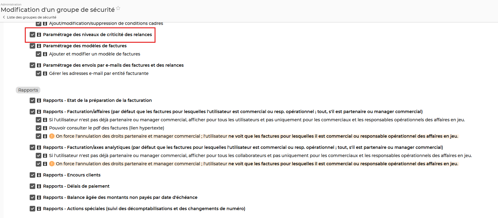 Un groupe de sécurité est considéré comme “Manager VSP” dès lors qu’au moins un droit associé à l’icône “cravate” est activé.